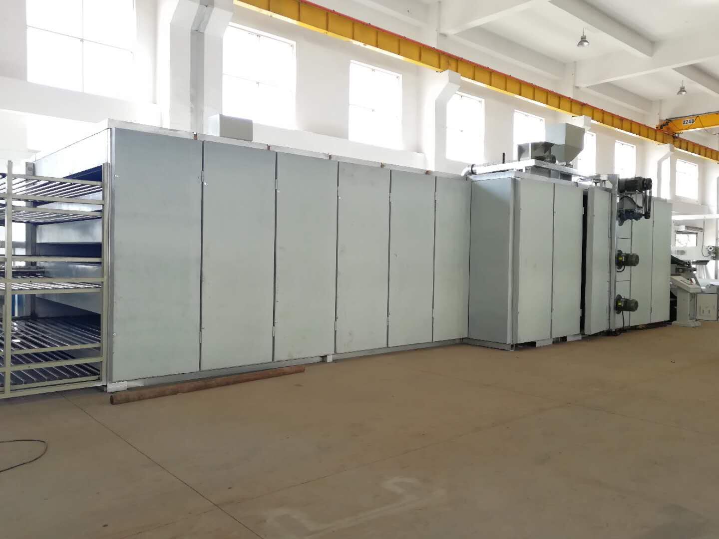 1)機器功能:對鋪好的棉進行高溫烘烤處理,讓棉進行粘合固定。
