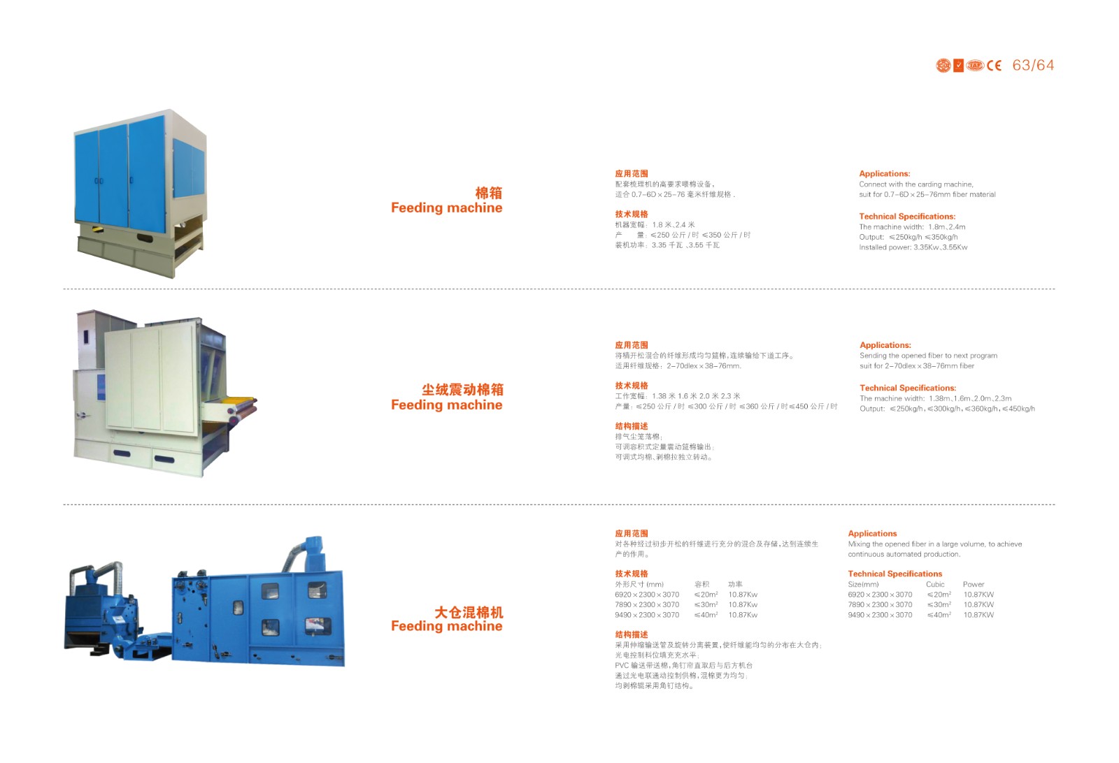 1)機器功能:將不同規(guī)格的各種捆包纖維按設定的速度比例輸送給前方機臺的 喂棉簾上,可以多