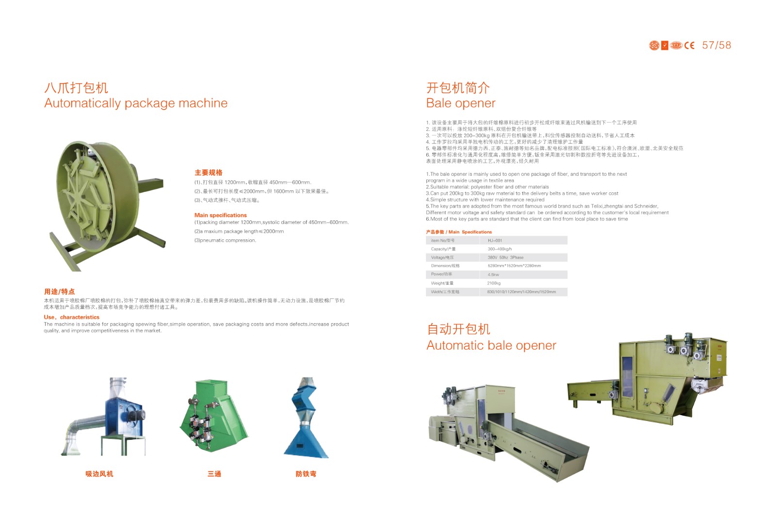 1)機(jī)器功能:將自動(dòng)給棉機(jī)輸入的棉梳理成網(wǎng),加工成單纖維組成的定量纖維網(wǎng)。
